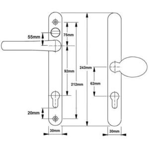 Fab & Fix Balmoral Lever Moveable Pad UPVC Multipoint Door Handles - 92mm/62mm PZ Sprung 212mm Screw Centres