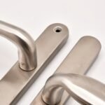 This Hoppe UPVC lever lever multipoint door lock handle from the Brugge* range suit Fullex SL16 multipoint locks with 68pz centres. They have sprung internal and external levers on a backplate of 244mm x 30mm which is available in various finishes.