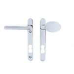 This Hoppe UPVC lever lever multipoint door lock handle from the Brugge* range suit Fullex SL16 multipoint locks with 68pz centres. They have sprung internal and external levers on a backplate of 244mm x 30mm which is available in various