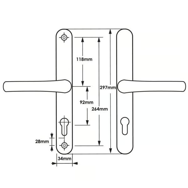 TSS Lever Lever Universal UPVC Multipoint Door Handles – 92mm PZ – Sprung – 264mm Screw Centres