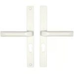 The Yale Platinum door handle range has been successfully tested to TS007:2012 and has achieved BSI’s two star Kitemark accreditation. They also meets the Official Police Preferred Specification requirements of Secured by Design and accredited with BSEN 1906:2010 grade 4. (200,000 cycles, 480 hours neutral salt spray exposure) These security handles with buit in cylinder guard have sprung 92pz levers on a backplate 245mm x 34mm. The distance between the fixing screws is 215mm with the bottom screw positioned 25mm below the euro profile cut-out. They are supplied as a pair complete with fixings consisting of a spindle and colour co-ordinated screws for PVC and composite doors.